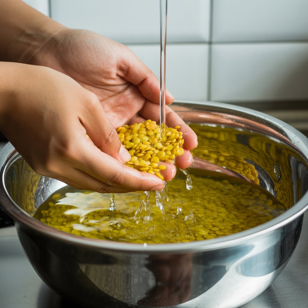 - Rinse all dals together until water runs clear. Soak 20–30 minutes (optional, helps cook faster).
