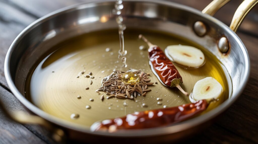 - Temper with ghee, garlic, onion, tomato, cumin, and red chili for authentic Rajasthani flavor.
