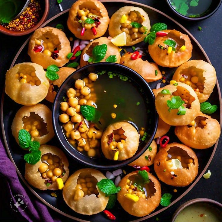 - Stuff the puris with a mixture of mashed potatoes, boiled chickpeas, chopped onions, and sev.